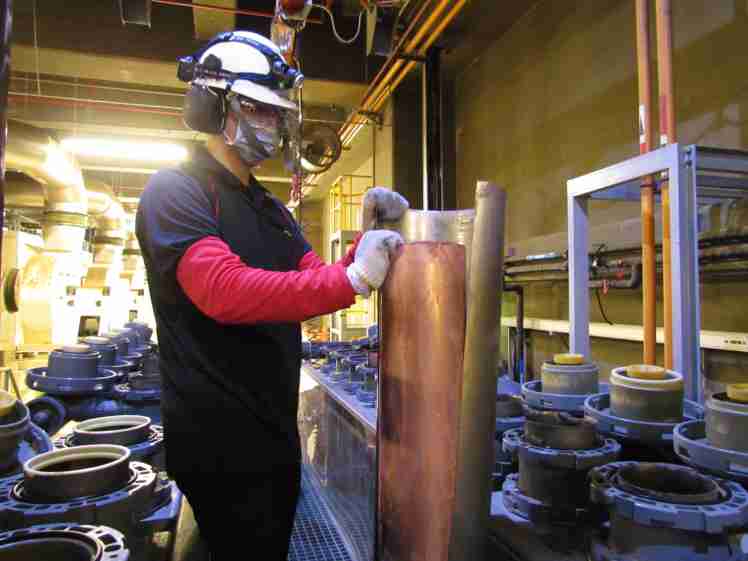 优游UB8将废弃物转化成有效的工业或民生原物料,,,,图为废铜液淬炼后再制成纯度极高的铜管