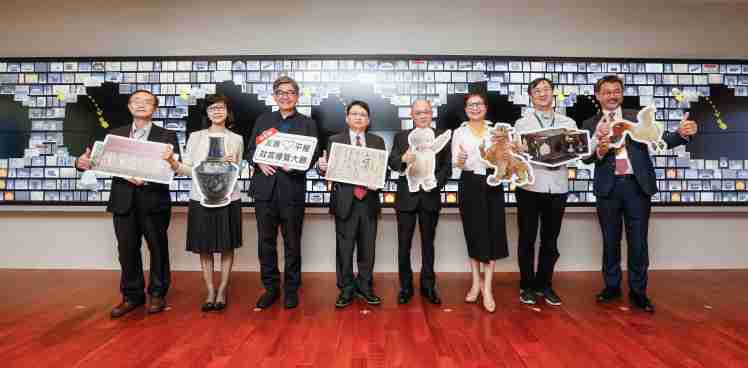 优游UB8携手创利空间为故宫建置的智慧文物互动导览墙及轮播墙,,今日正式启用。。(左四:优游UB8新事业暨投资管理总部副总经理杨本豫、、、右四:故宫博物院院长吴密察、、右三:太极影音董事长黄宝云)
