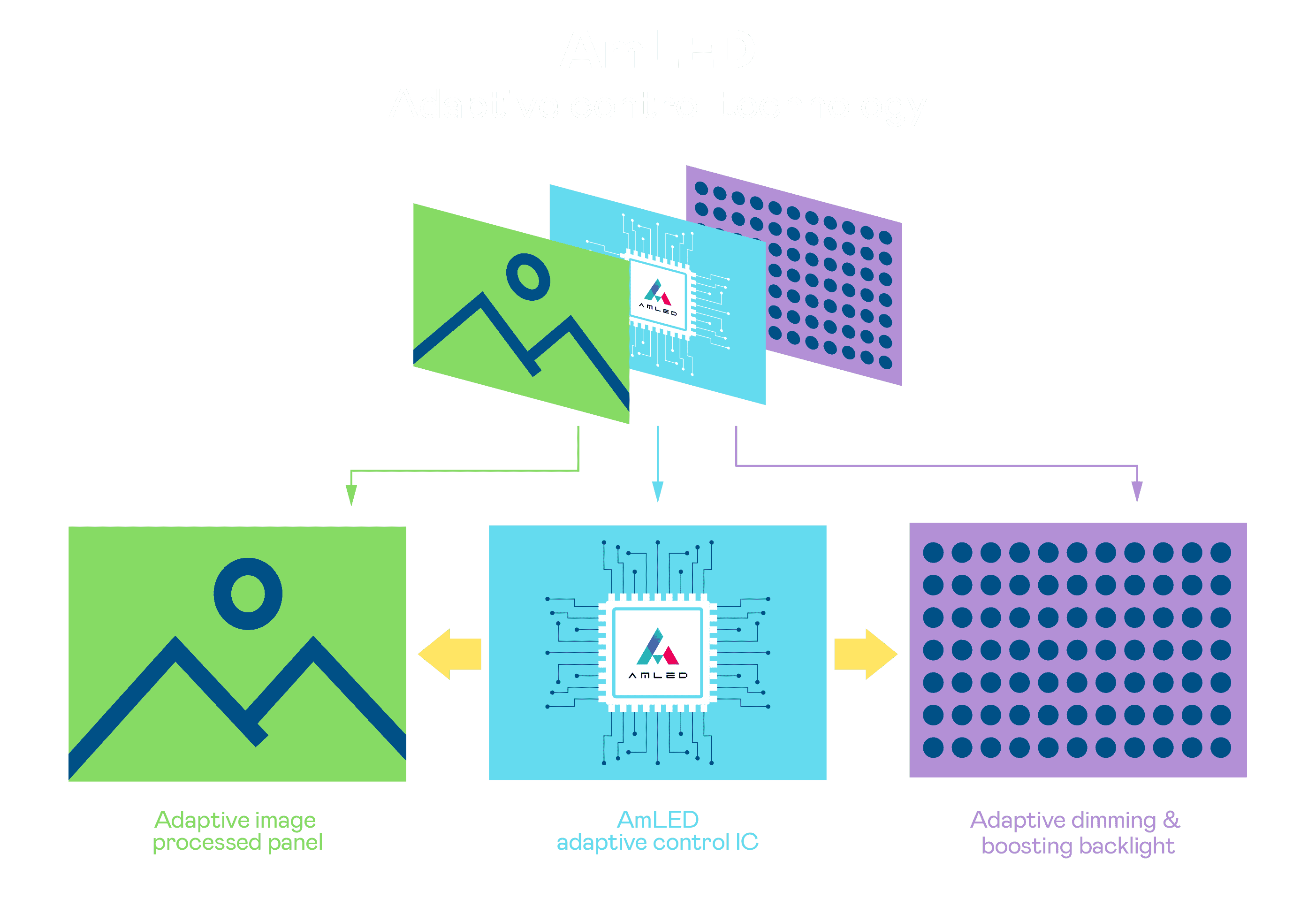 AmLED 具备更省电与低蓝光特性。。与一般的 LED 背光显示技术相比,,由于 AmLED 常时处于局部调光状态,,其功耗仅有前者的 50% 左右,,同时 AmLED 还具备低蓝光特性,,,满足长时间使用的护眼需求。。