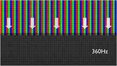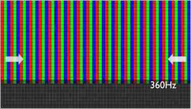 传统液晶驱动是从左到右单向进行,,,在画面更新速度愈来越愈快的情况下,,,位于驱动线路末端的右下角区域,,画素的闸极来不及在短时间内获得足够电压,,,无法显示出正确的颜色资讯。。。